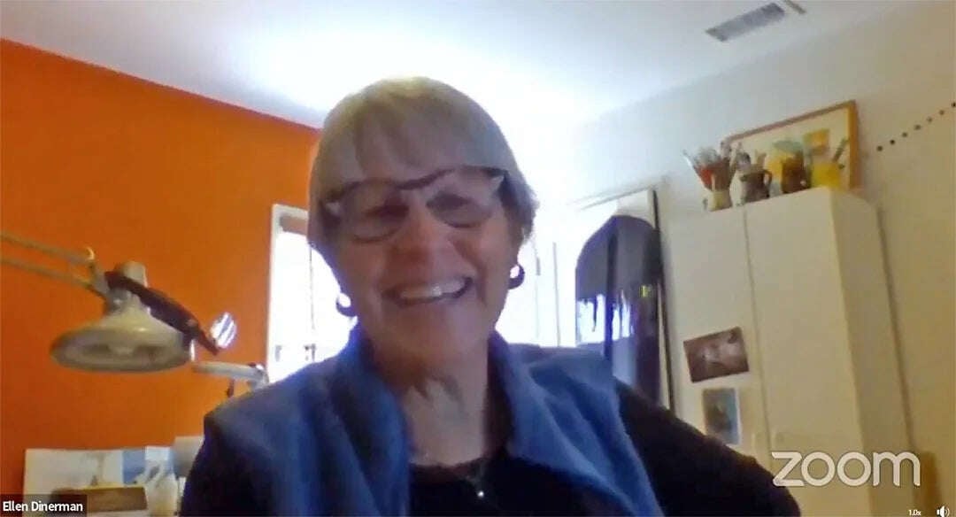 Two years ago, when Piece by Piece had to shutter in-person workshops, we transitioned to all online engagement. Our creative team of instructors shifted and adjusted to the new world of virtual learning—no easy feat for mosaic, which is a hands-on visual art. Luckily for us, we had artist Ellen Dinerman join us a few months in, and she has been supporting our artists through a series of skill-building and inspirational Zoom workshops ever since. We took a moment to talk with Ellen and learn a little more about her.