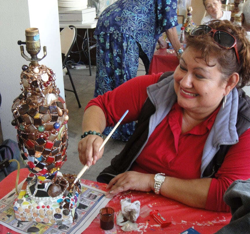 Guadalupe in Visiting Artist Jolino Beserra's mosaic lamp workshop.