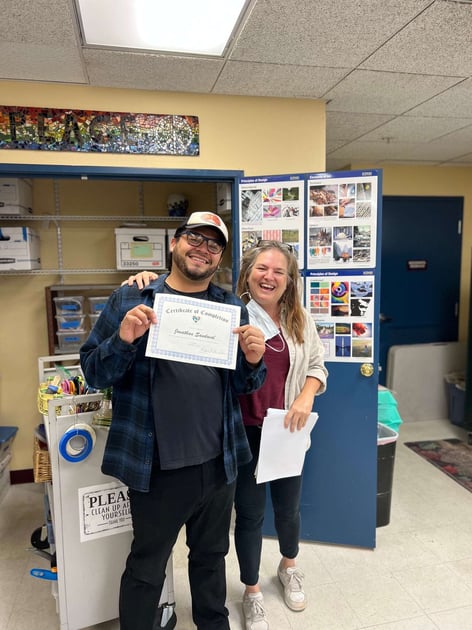 Beyond just honing his artistic skills, Jonathan has experienced profound personal growth through our program. As someone who grapples with ADHD and focus issues, he's found the structure he needs to excel, both within and outside of the studio. The non-judgmental environment at Piece by Piece has allowed him to shed the burden of performance anxiety, letting his artistic side grow and offering him a space to embark on a journey of self-discovery.