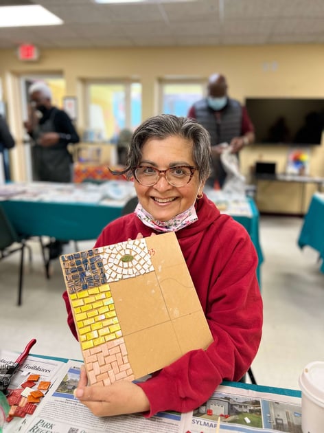 It is so cool and exciting. I was happy to get back to normal. Coming back from COVID everyone felt broken, and isolated. But when I’m here I’m with my tribe and not alone. All of us here are like a mosaic ourselves. We’re all a little broken but when we’re here we’re one big beautiful piece.