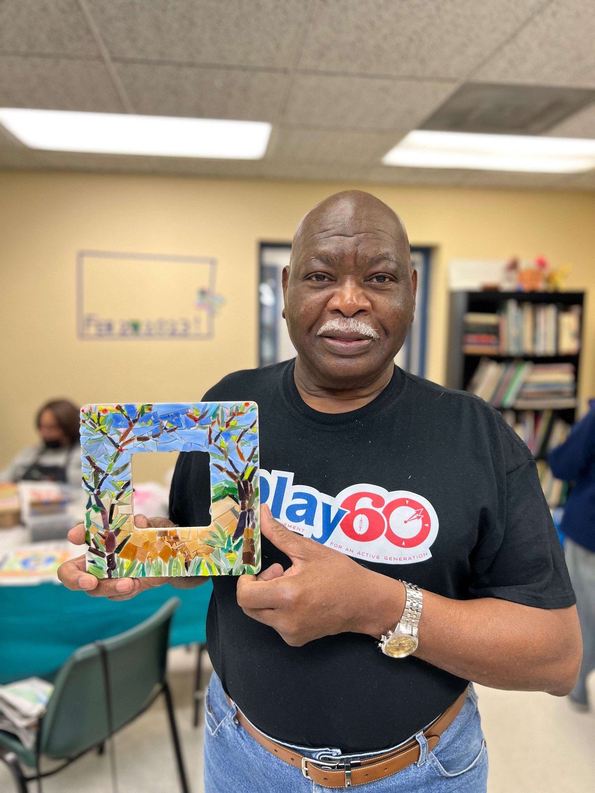 Before joining Piece by Piece, I had some experience with mosaic art. I worked on a chess board with a group of veterans, but it was just a side project. In the past, I had worked with pottery, ceramics, and watercolors in a veterans housing unit where I participated in an art therapy program. I also taught in local schools and volunteered at A Place Called Home. So, I have experience in different art forms, but mosaic art was new to me.