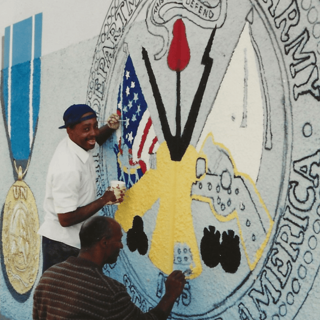 I’ve since remained living in the nearby neighborhood, and throughout the years brought many people over to show them the National Veterans Mural. In July of 2022, a lifelong friend was visiting me from New York who is a US Army Gulf war veteran, and for the first time I shared the mural with a veteran. During our visit, we noticed that construction had begun for the upcoming Metro VA station that I’d heard about. I began researching online again and then discovered Metro Arts’ plans for the Veterans Legacy Mural project.