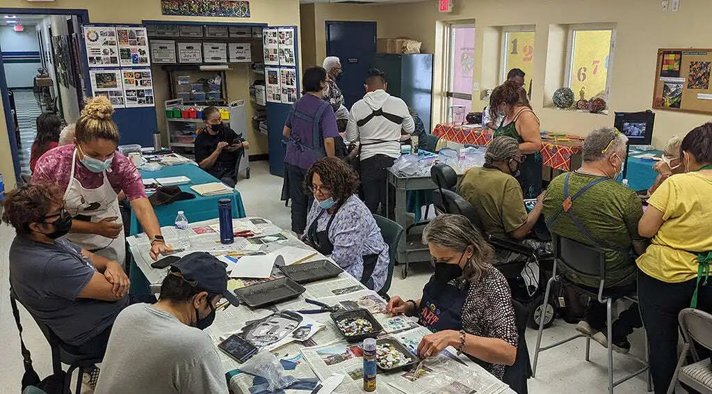 Recognizing the importance of life skills, Piece by Piece places significant emphasis on supporting participants in more than just the arts. Participants gain practical knowledge around financial management, advocacy, healthy habits, and more. This comprehensive approach equips them with valuable skills that can be applied not only to their mosaic artwork but to theri entire lives