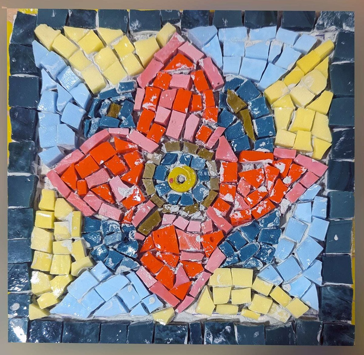 In December, instructor Ellen Dinerman led a workshop where participant artists used smalti, an opaque glass material often used in traditional mosaics in churches and large-scale public work. Piece by Piece recently received several generous donations of the special material in both Mexican and Italian types as well as a Chinese version. Smalti is known for its vibrancy and imperfections which gives mosaic a painterly effect. “Smalti is such an unusual material,” said instructor Ellen. “It’s really different from stained glass and it’s different from other materials we are often using in the studio.”