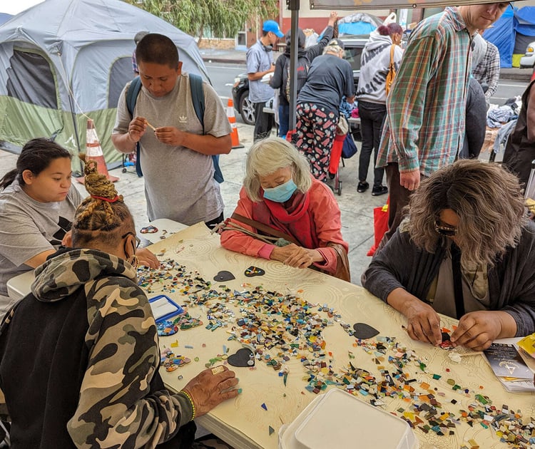 Beyond its program offerings, SRAA serves as a platform for constituent nonprofit organizations to come together, exchange best practices, and advocate collectively for the well-being of the most underserved individuals in Los Angeles. Collaborating closely with service providers, SRAA ensures that participants in missions, clinics, shelters, and reentry programs are aware of the free, accessible arts programs available within Skid Row through their efforts.