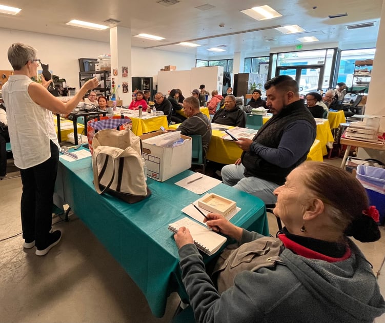 In March, our Directed Studies program welcomed guest artist Julie Williams, a sculptor and mosaic artist who brought a fresh approach to the Piece by Piece studio. Over four Wednesdays, participants dove into a hands-on workshop focused on creating 3D sculptures using Wedi board—a foam-core construction material typically used in showers, reimagined here as a lightweight and versatile base for creative expression.