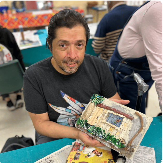 John became part of Piece by Piece in June 2022, initially invited by a friend. What began as a casual visit quickly transformed into a meaningful journey—a place where he could explore his creativity, challenge himself, and find a sense of belonging. Although initially daunted by mosaic work, John gradually discovered not only confidence in his abilities but also joy in the process. “I’m very proud that I can do mosaic projects now,” he shares. “It’s shown me I can do anything I put my mind to.”