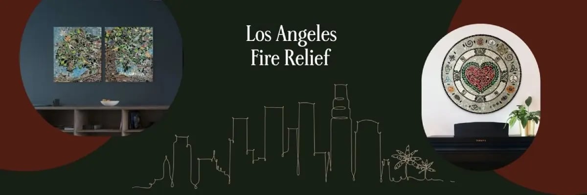 The LA Fire Relief Collection consists of mosaics created with love and dedication by our talented artists. Every piece in this collection is a unique representation of resilience, crafted to bring beauty and strength to the community as it rebuilds. All net proceeds from the sale of these mosaics will go directly to the Los Angeles Fire Department Foundation and the LA Arts Relief Fund, two organizations that are providing essential resources for those affected by the fires.