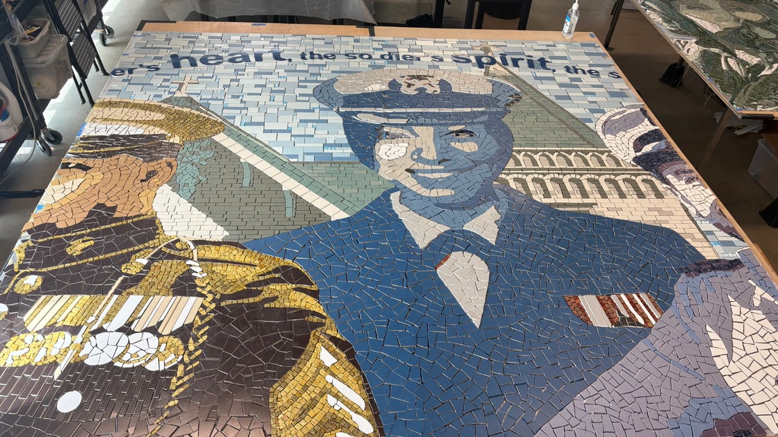 Participant artists and veterans contributed to both the design and fabrication of the mural, bringing personal insight, symbolism, and pride to the project. For many, being part of such a significant public artwork was deeply meaningful. One veteran described the honor of working on the largest project they had ever participated in; another reflected on how seeing symbols representing military service within the mosaic made the experience especially powerful.