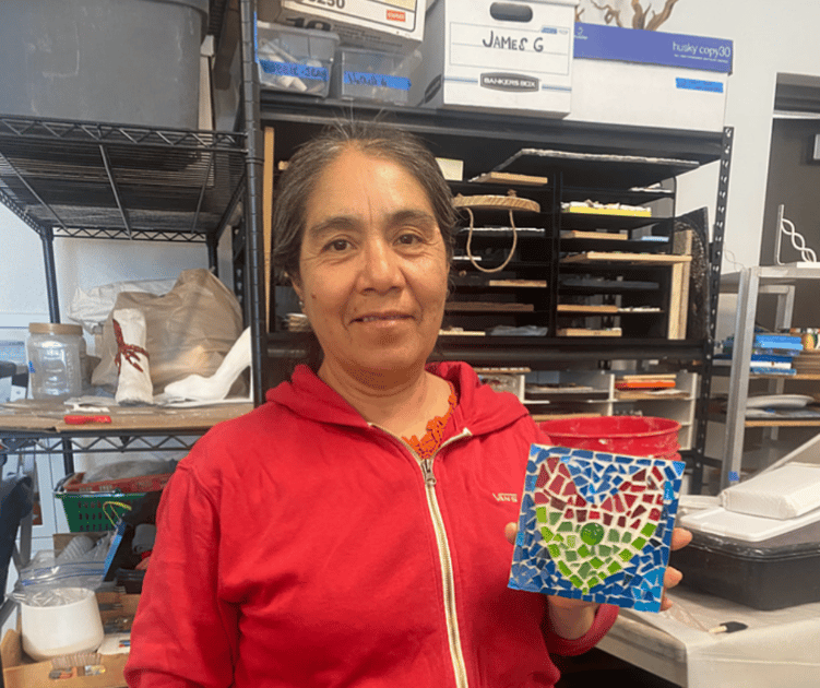 Now, art-making is an essential part of Rosalina’s weekly rhythm. The creative process infuses her days with energy, motivation, and a newfound sense of stability. Through mosaic art, she has discovered a space to grow, connect, and celebrate her achievements, a foundation for resilience and self-worth.